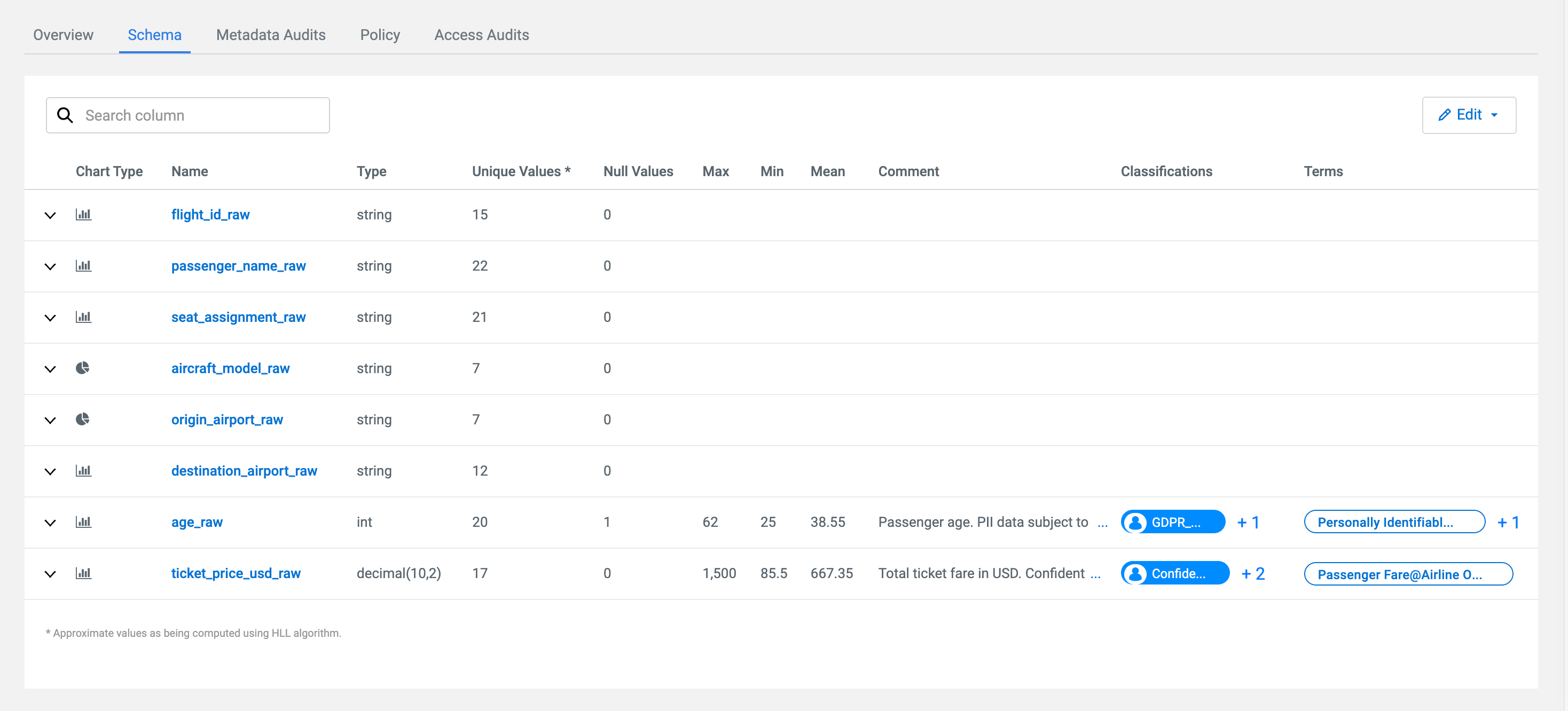 chart in the Schema tab.
