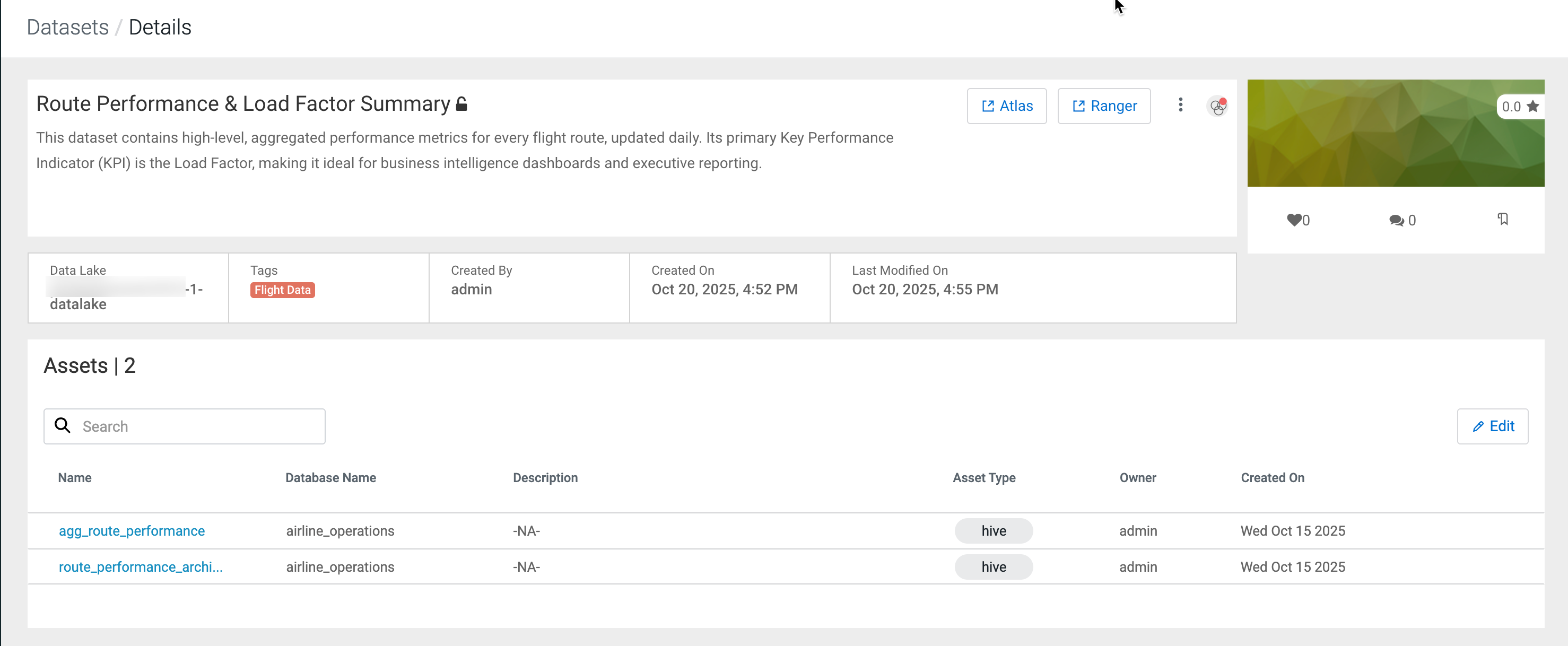 You can group data assets into datasets. This enables you to organize data based on business classifications, purpose, protection requirements, or more. Examples of datasets are: customer profiles, sales assets, financials, PII, and HR data.