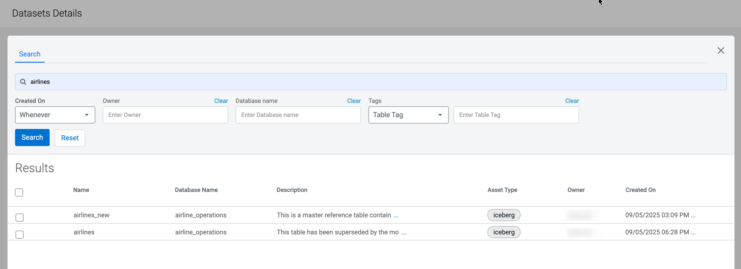 - Owner: Enter the name of the owner to refine the search on the basis of the owners of the assets.
