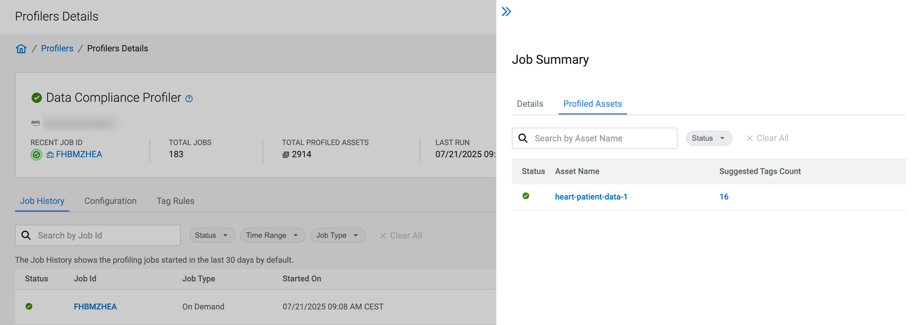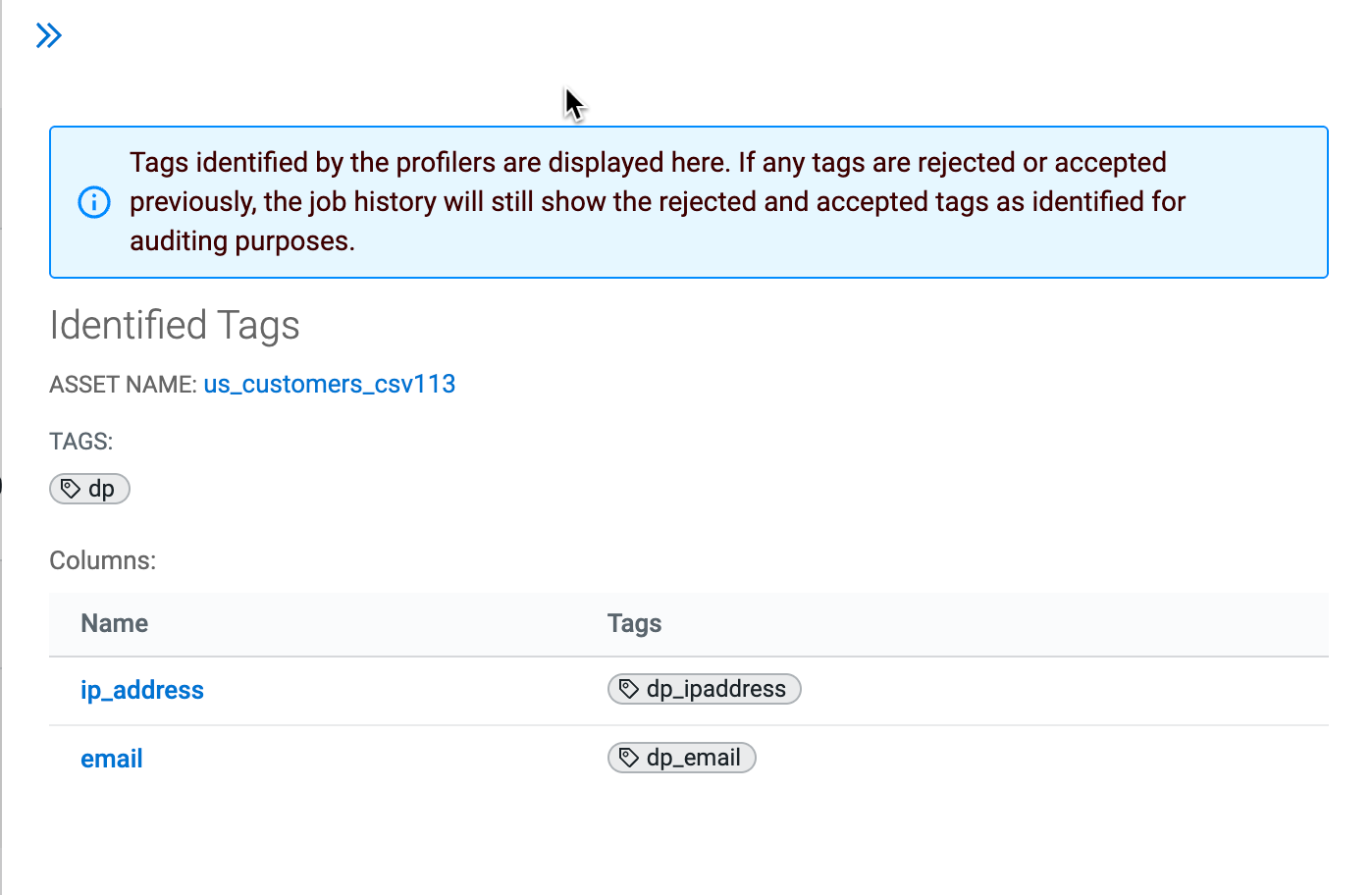 You are able to check and approve tags created by the Data Compliance Profiler assigned to your assets before applying them.