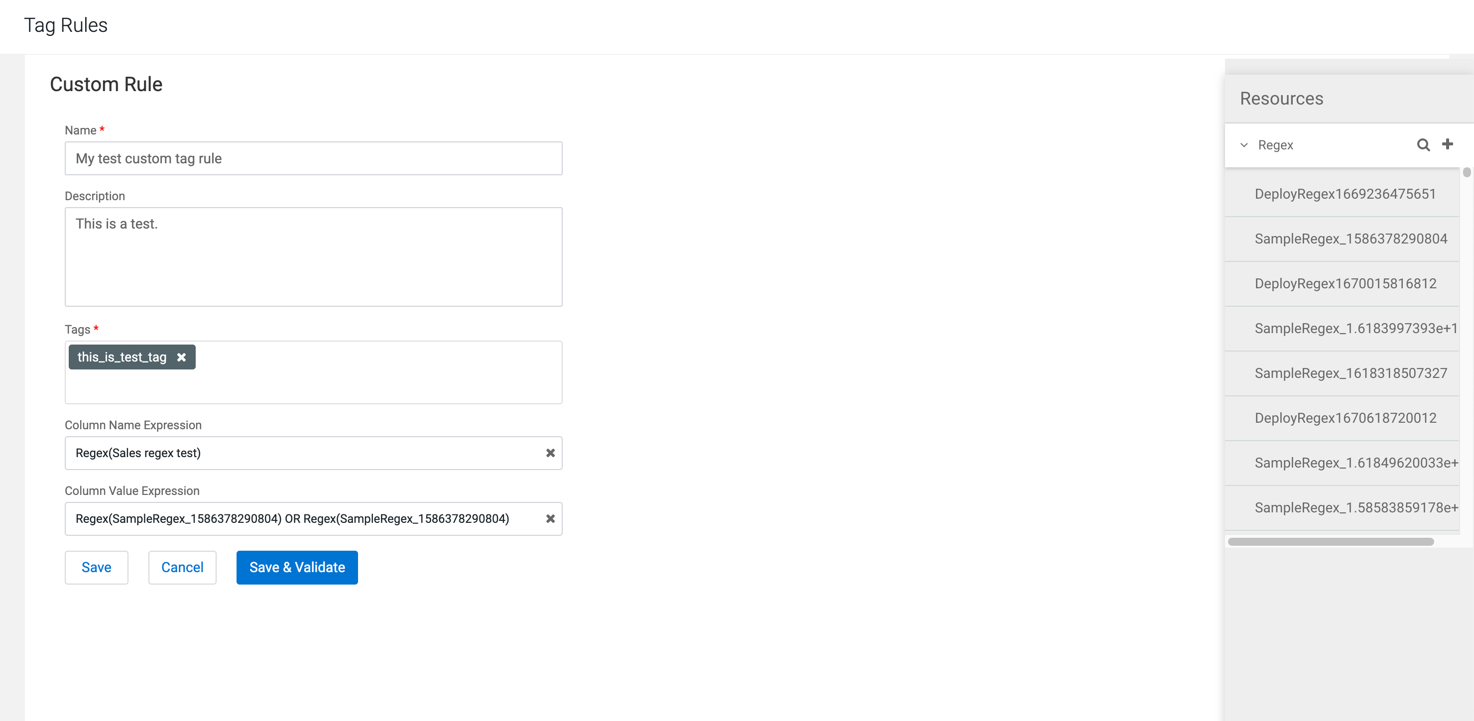 displayed on the Tags Rules tab. Once the validation is