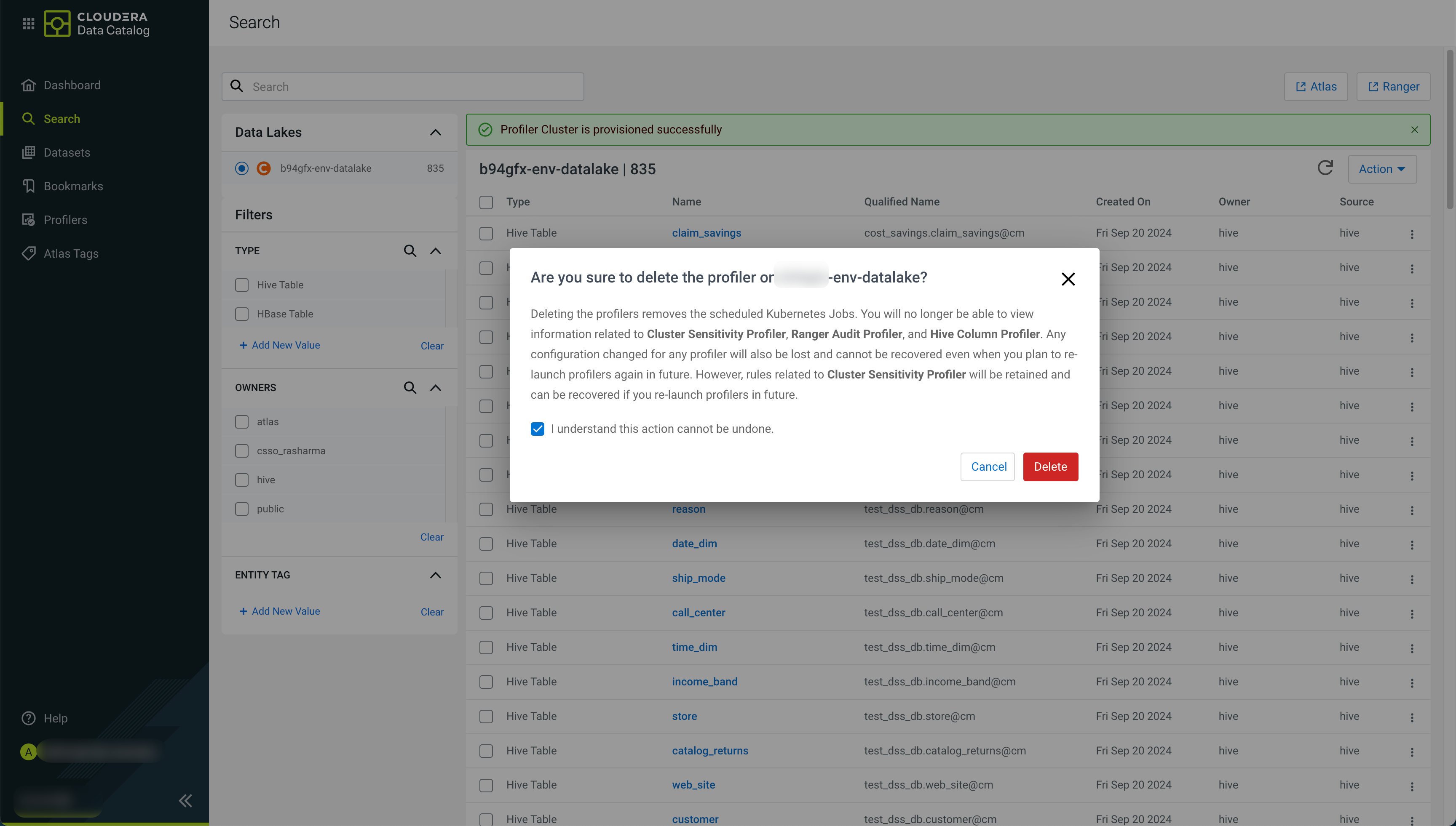 Deleting the profiler container (pod) jobs removes all the Custom Sensitivity