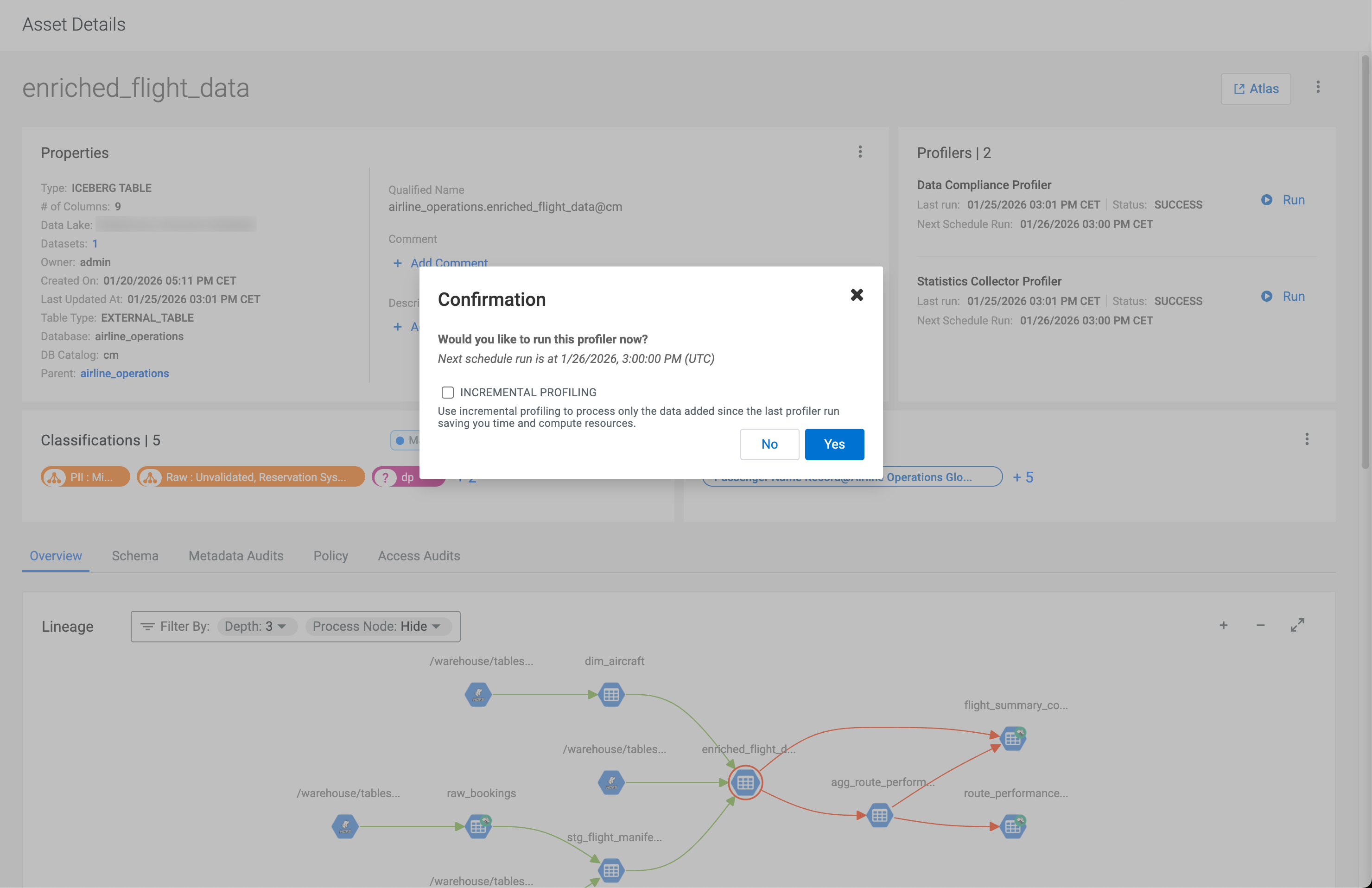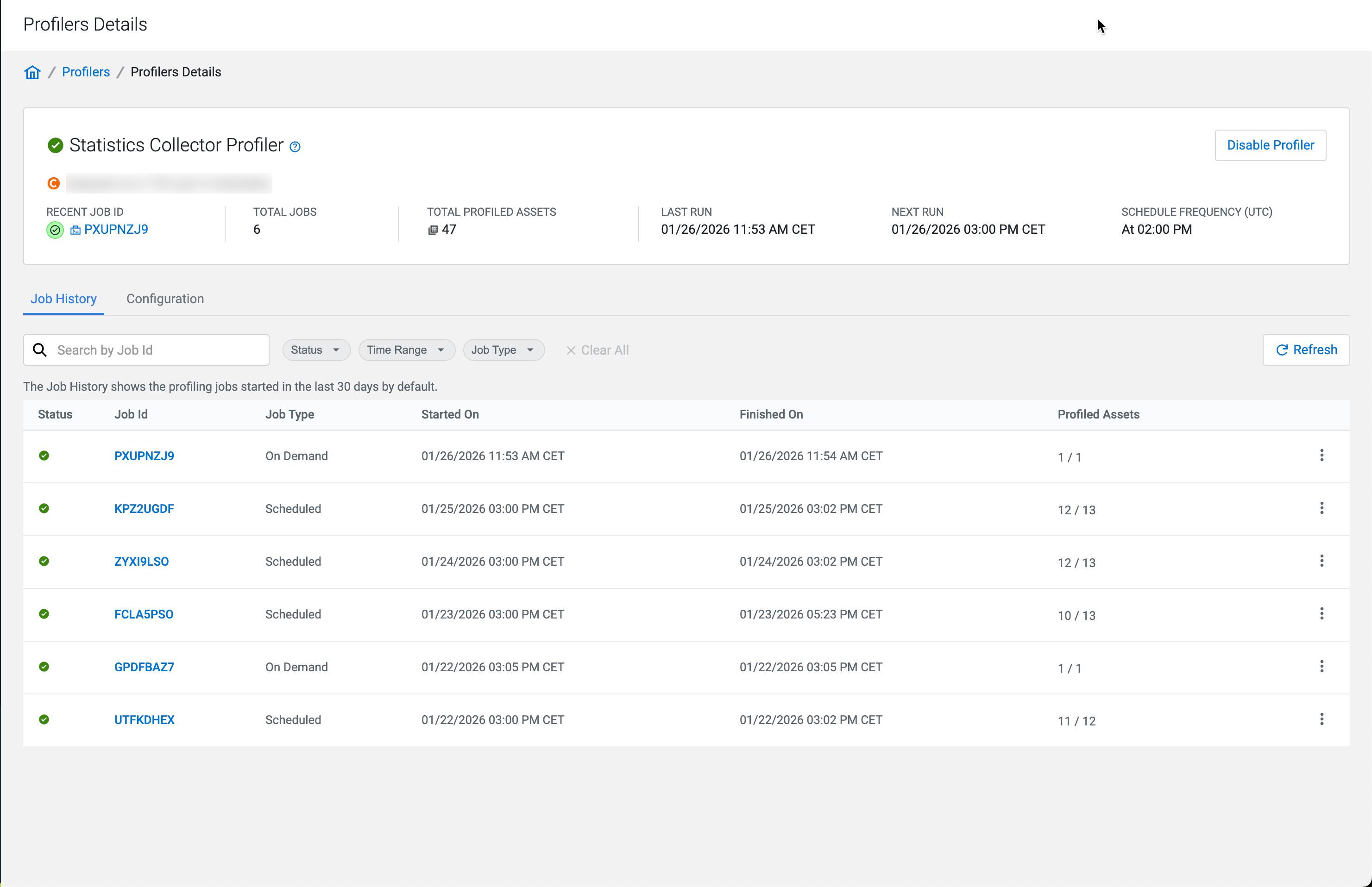 You can use On-Demand Profilers to profile specific assets without depending on the cron-based scheduling of profilers jobs. The On-Demand Profiler option is available in the Asset Details of the selected asset.