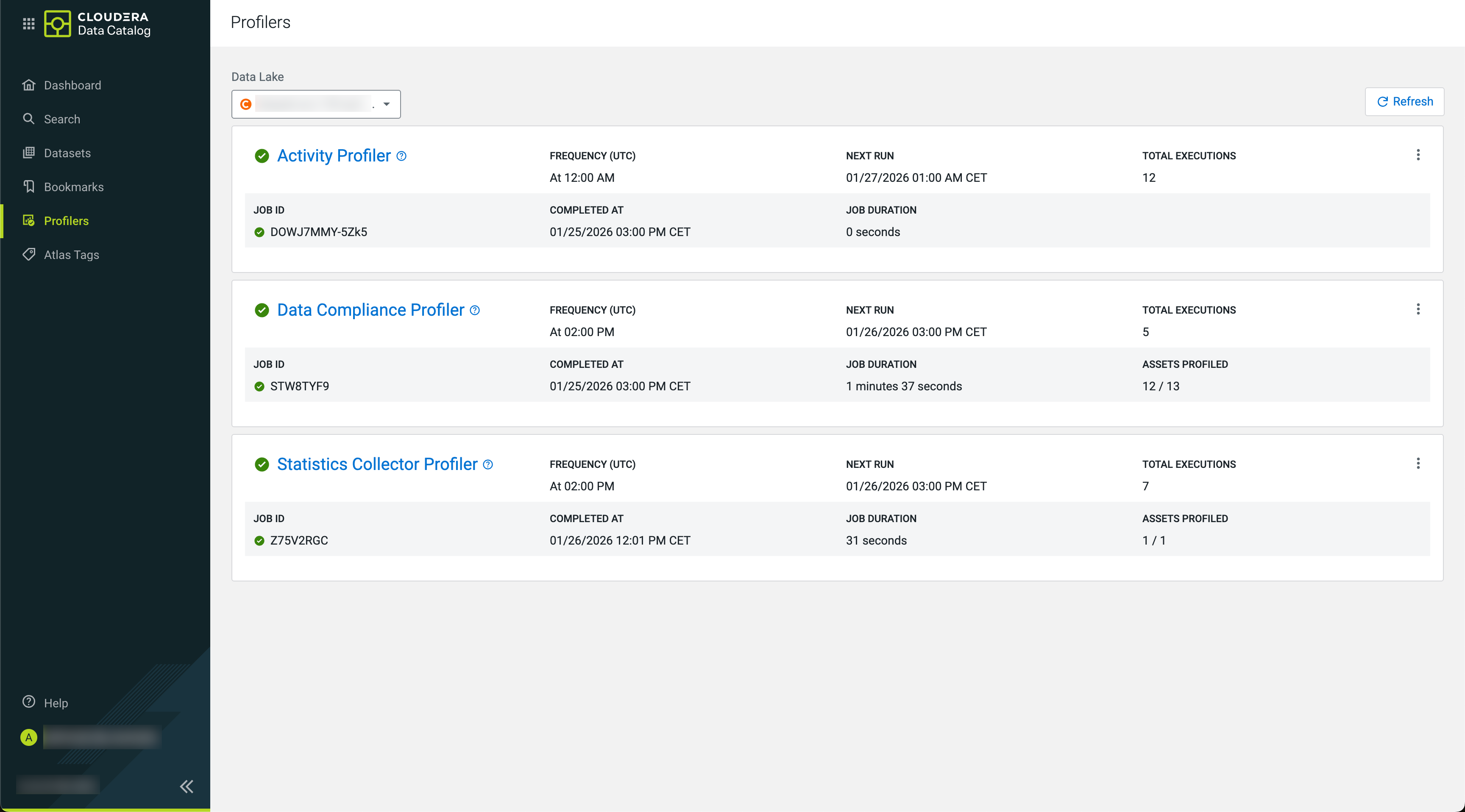 In Profilers, you can see your last run profiling jobs. Use this page to quickly check if your profiler jobs are failing.