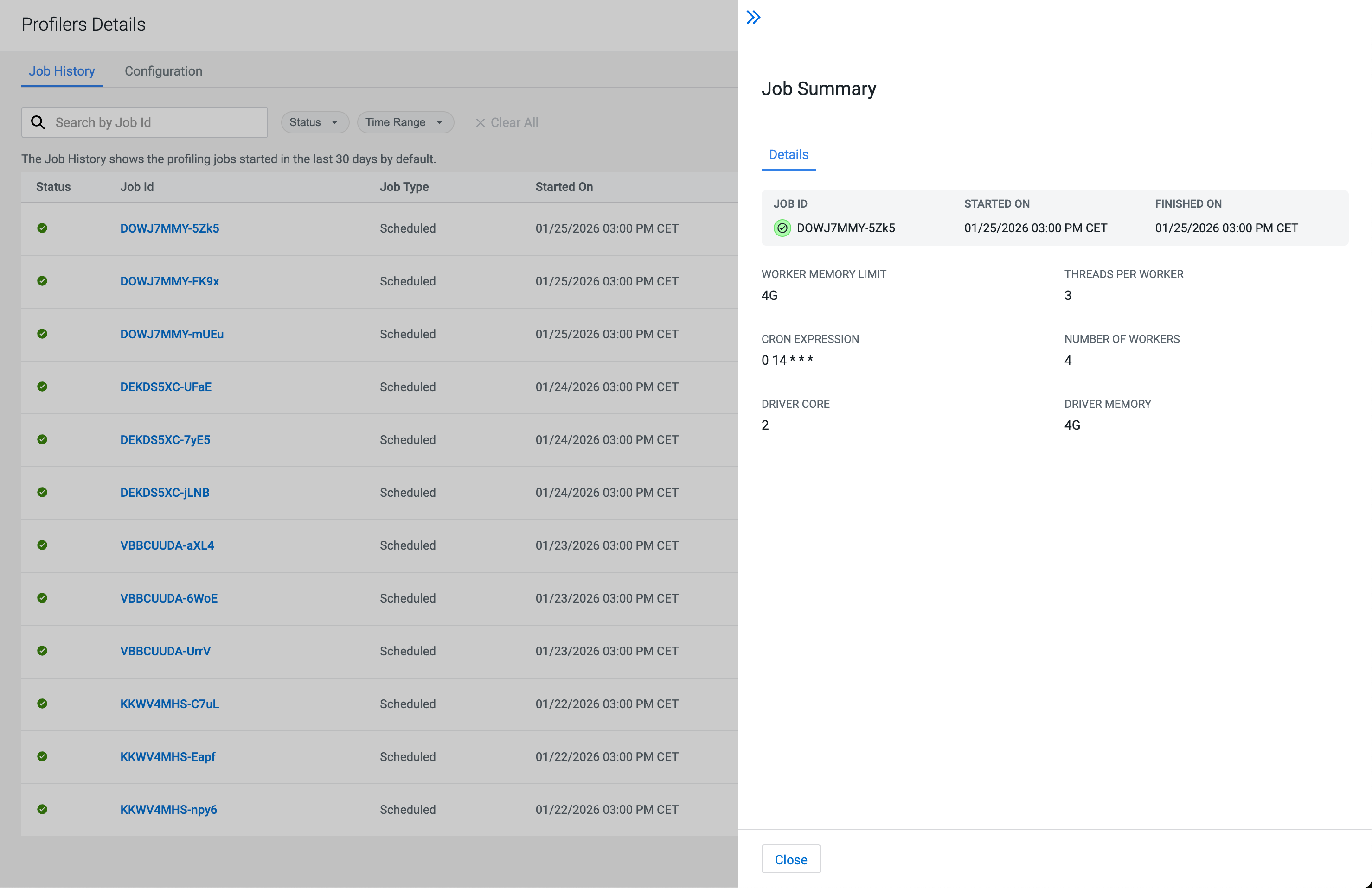- Verify the status of the profiler runs.
