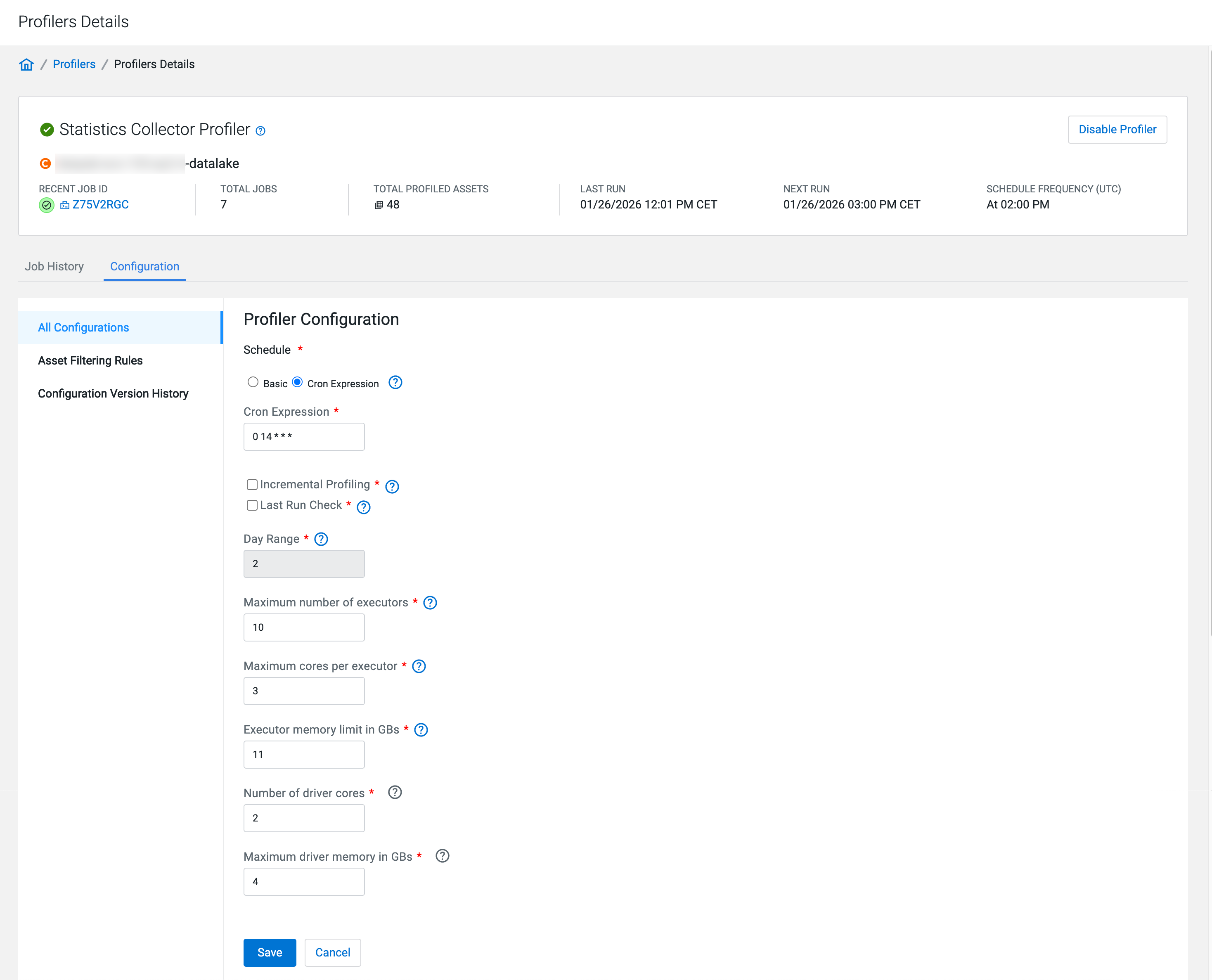 You can monitor the last status of individual profilers by viewing them in . Also, you can change their resources, sensitivity and scheduling.