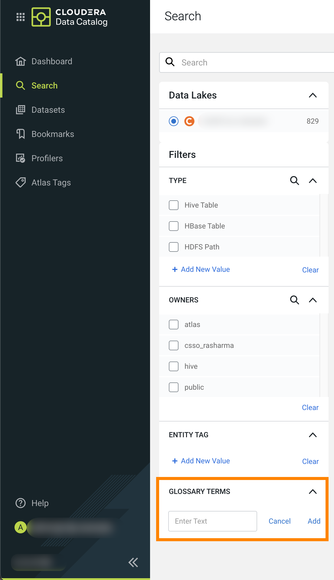 You can search for the datasets using the Glossary Terms filter available on the Search page.