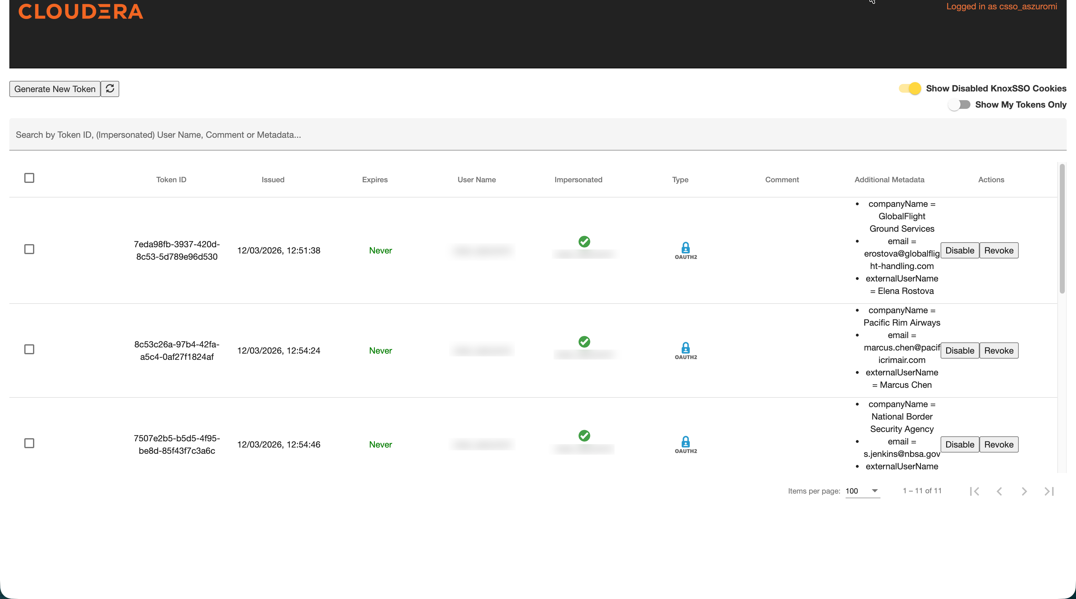 External user Client IDs are also visible in Knox under > Environment > [***YOUR_DATALAKE***] > Token Integration > Token Management