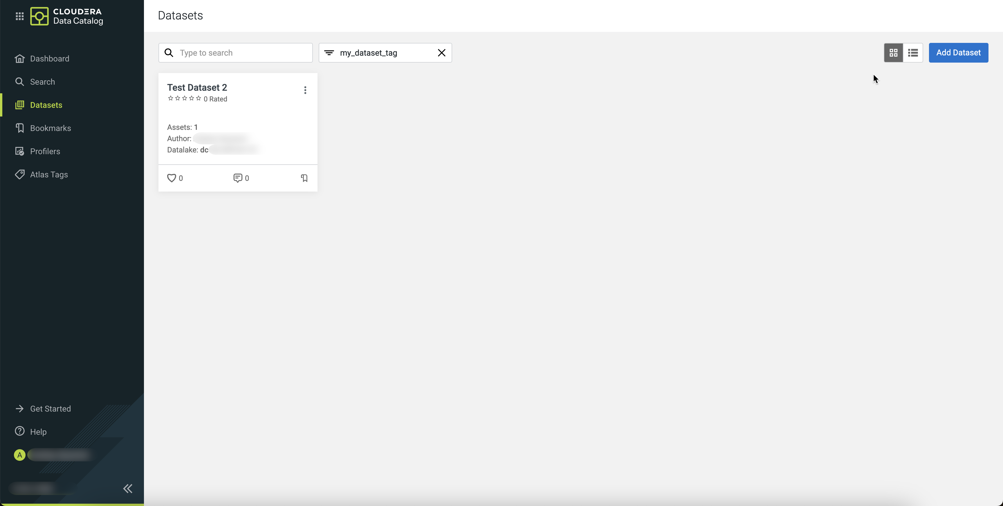 You can view and filter datasets with tags added during dataset creation. Select the tag from the drop down list or enter the tag in the filter box. Any dataset with the filter tag assigned to a column will appear in the results.