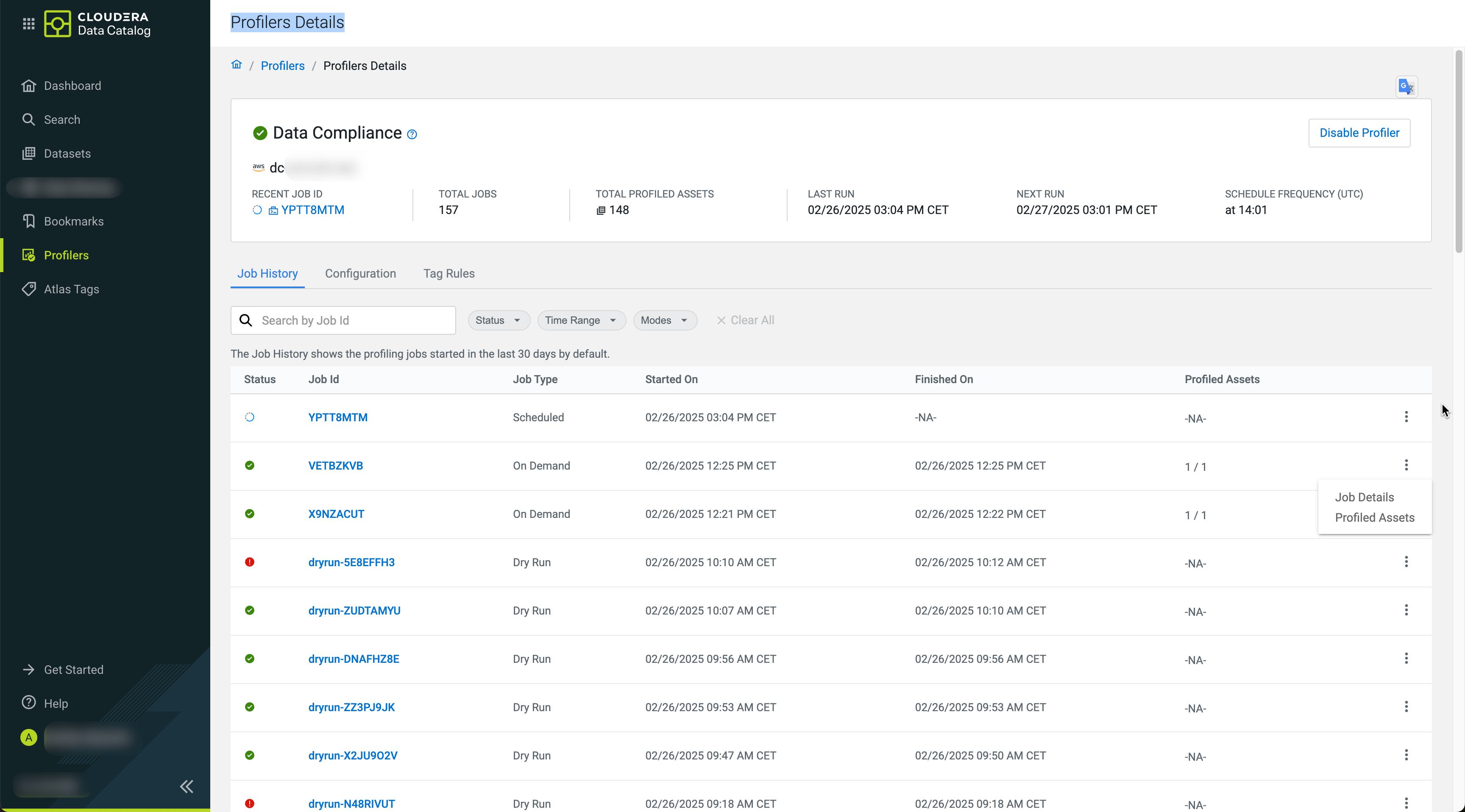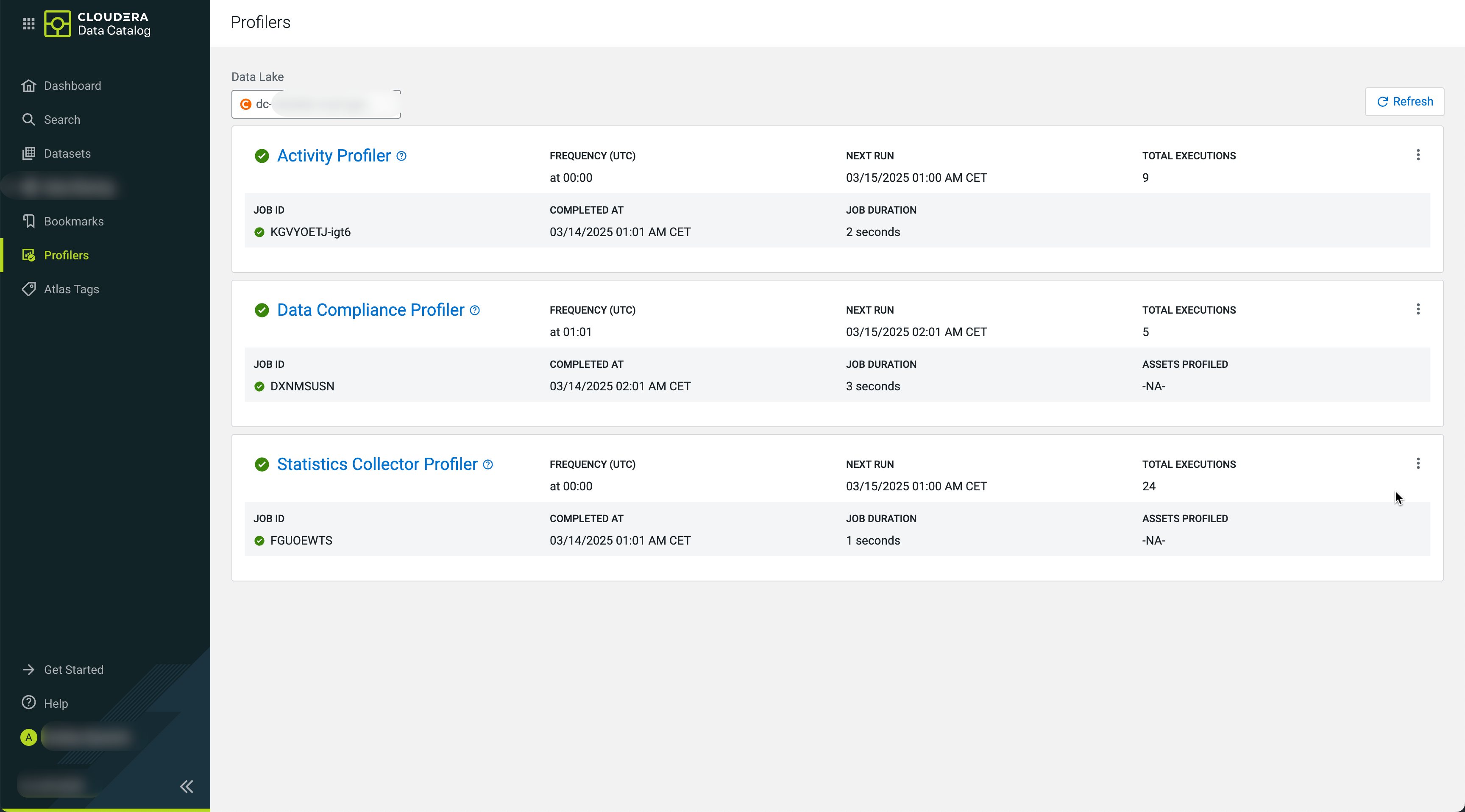 Under , you can have an overview of your profiler since their launch and some basic information of the last jobs. Use this page to quickly check if your profiler jobs are failing.
