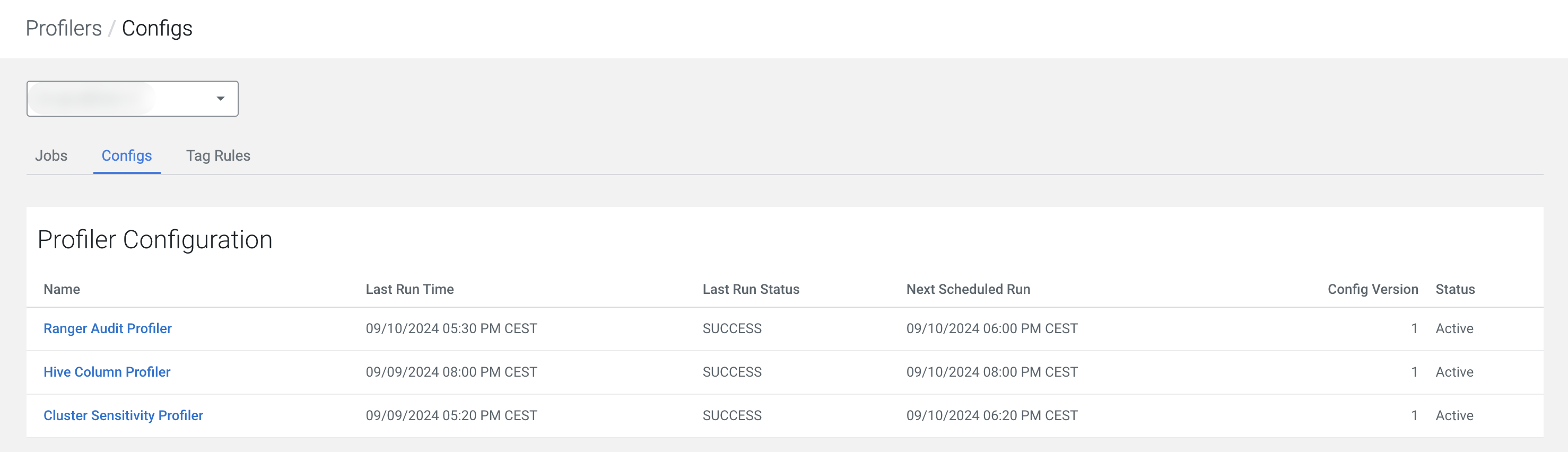 You can monitor the last status of individual profilers by viewing them in Profiler > Configs. Also, you can change their resources, sensitivity and scheduling.
