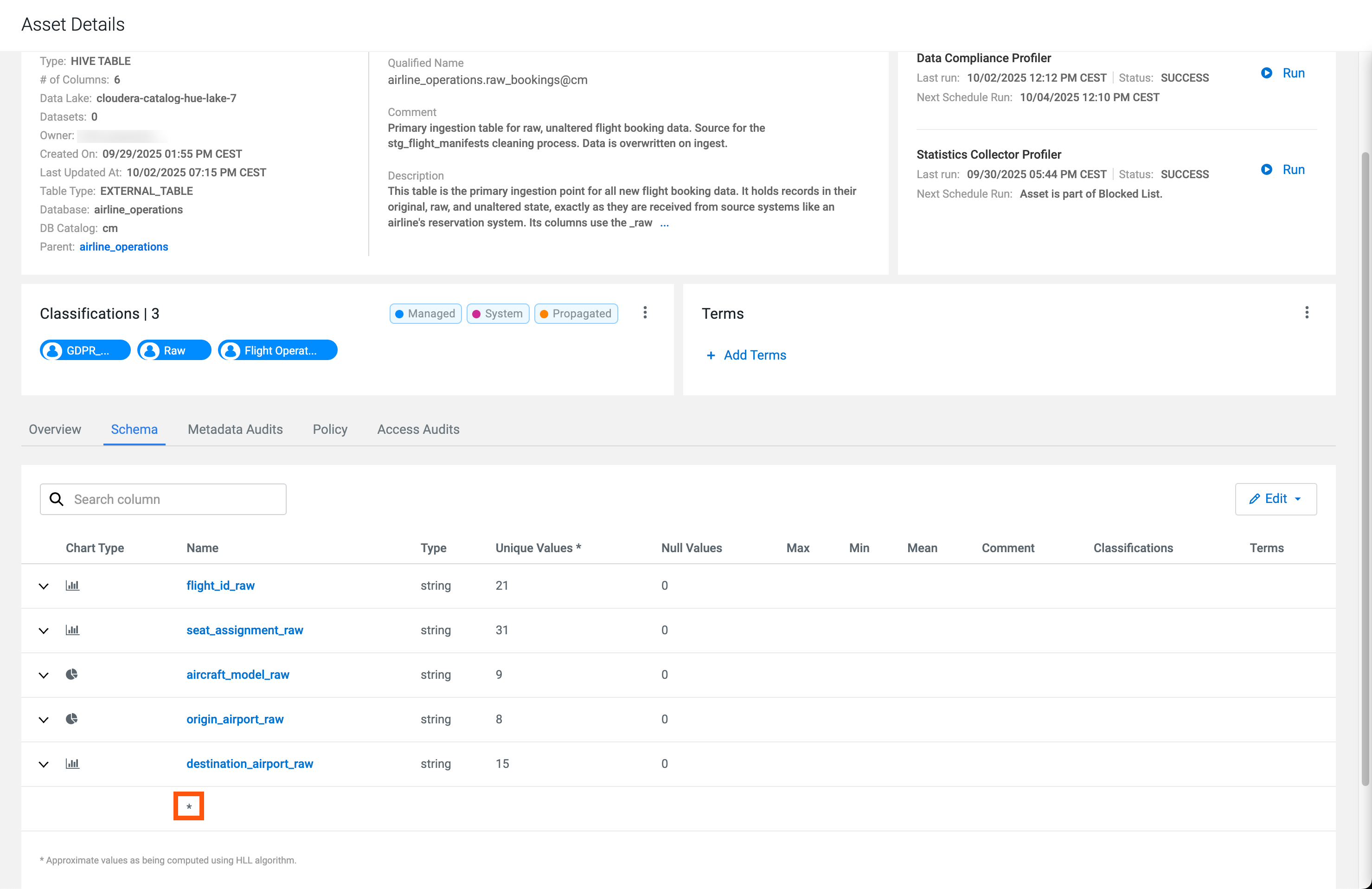 If users are not able to view the table details, such as a column, an asterisks appears instead of the row in table.