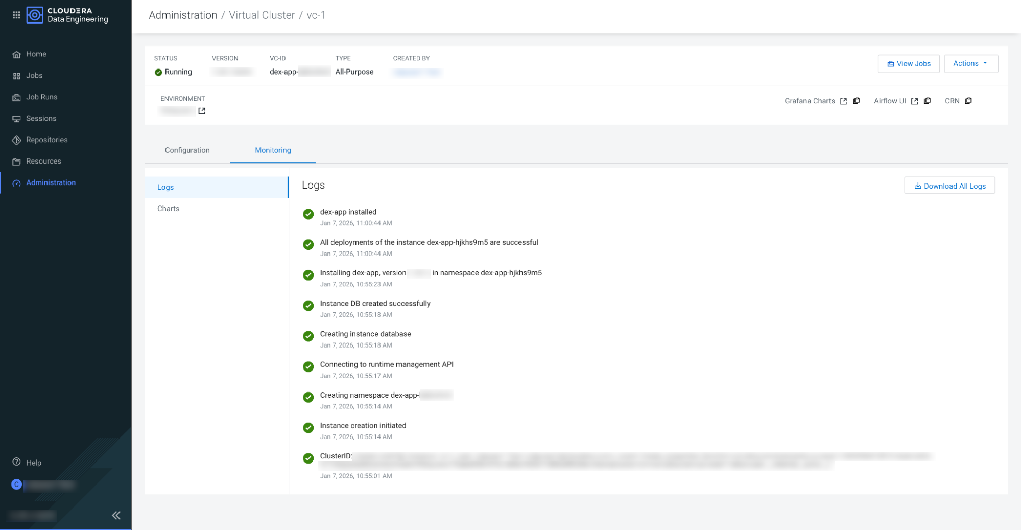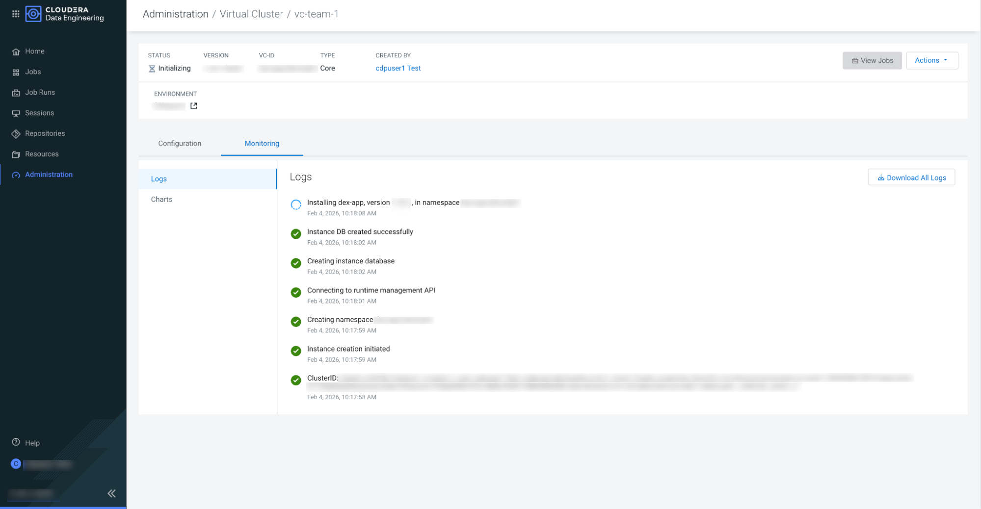 For more information about the virtual cluster, navigate to . Click on the Cloudera Data Engineering Service in which the