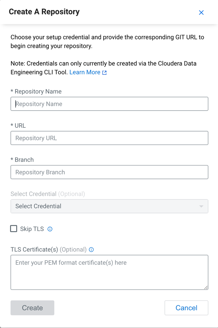 Creating a repository in Cloudera Data Engineering [Technical Preview]