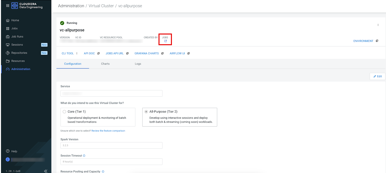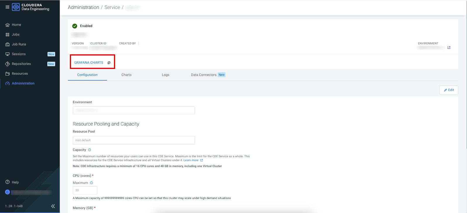 Go to the cluster details page in Cloudera Data Engineering and copy the URL of the Grafana