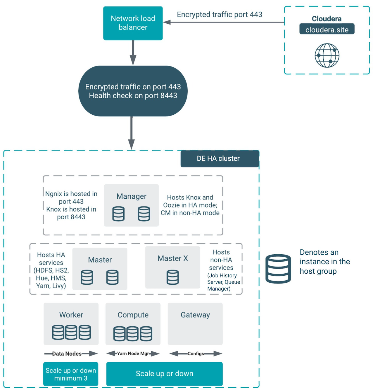 | Manager node is down without the Cloudera Manager server. | No impact on workload, jobs are scheduled and executed. Autoscaling is also triggered. |