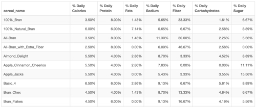 Percentage Display with Cereals Dataset