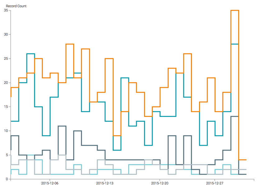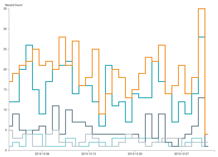 To change the style of a line (linear by default), navigate to the Marks menu, and select one of the options from the Line Style menu: