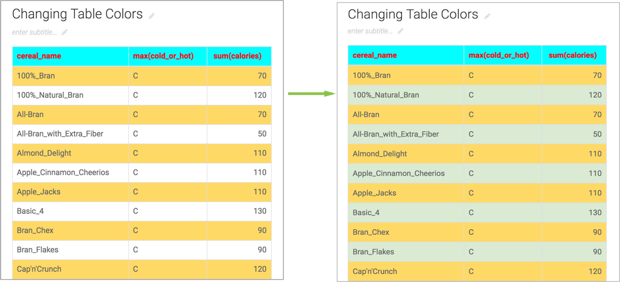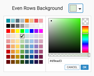 In the following example, notice the difference in the background color of the even rows before and after changing the background color.