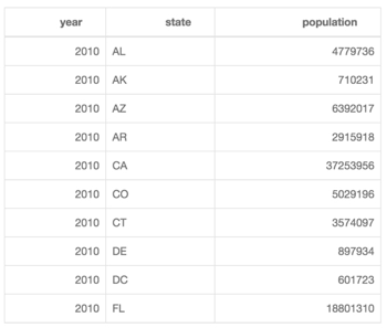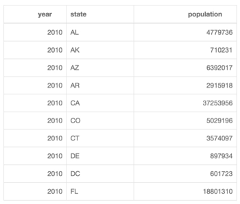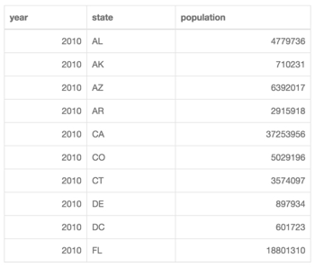 In the following example, states are aligned to the left, and population data is aligned to the right.