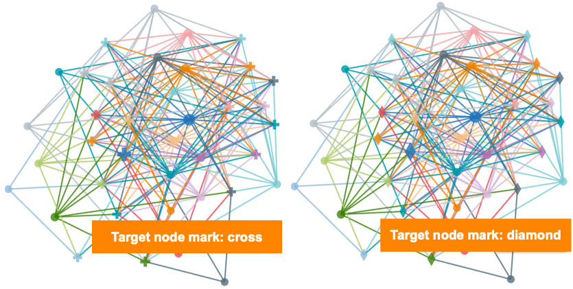 Compare the appearance of a visual with target node cross mark, and target node diamond mark.