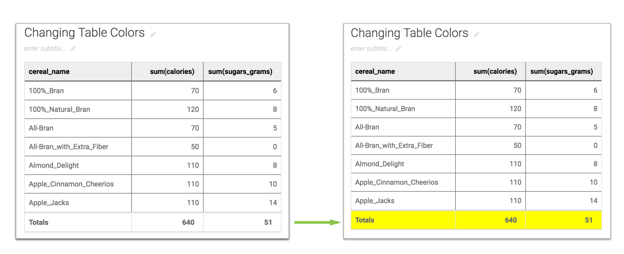 In the following example, notice the difference in the totals row before and after changing the background color of the totals row.