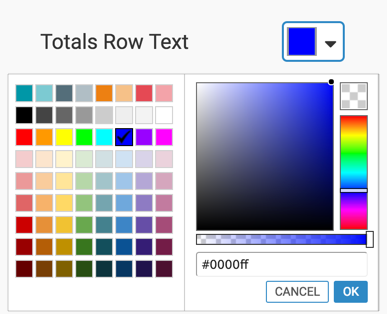 In the following example, notice the difference in the totals row before and after changing the text color of the totals row.
