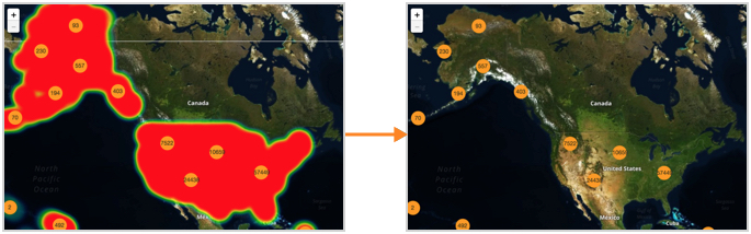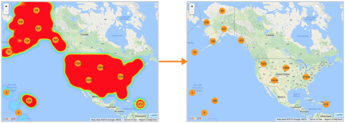 Displaying heatmap In an Interactive Map visual, Cloudera Data Visualization enables you to show or hide the Heatmap. On the right side of Visual Designer, click Settings. In the Settings menu, click Heatmap. To show or hide the Heatmap, select or unselect Enable Heatmap option. This option is on by default. If you disable the Heatmap option, Google map renders only with the Cluster option, the other default. Similarly, the Mapbox map renders without the Heatmap option. Parent topic: Customizing heatmap
