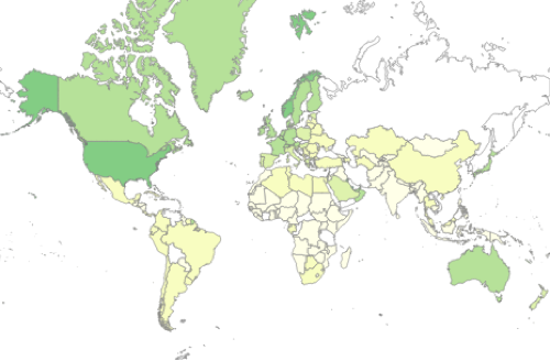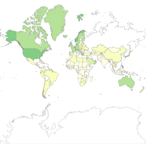 world map used here, this includes all the continents except Antarctica.