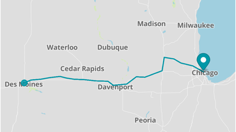 route shows a default route and a default pin at the end of the route.