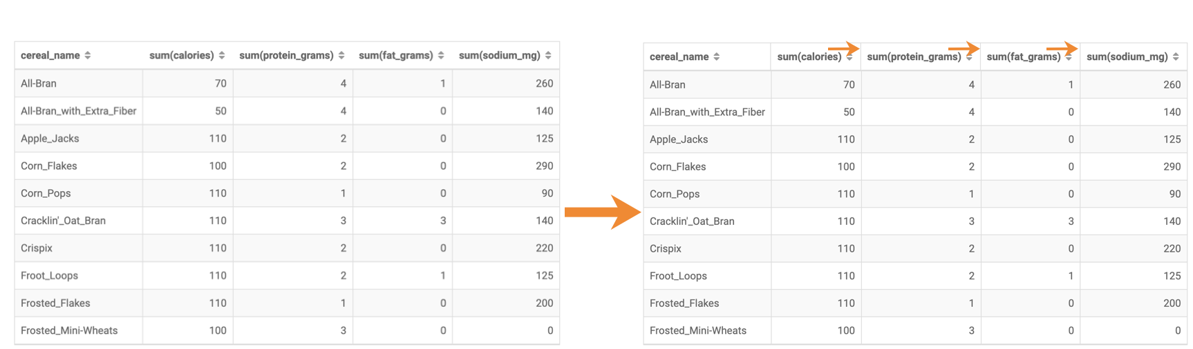 In the following example, you can see the column header borders before and after selecting this option.