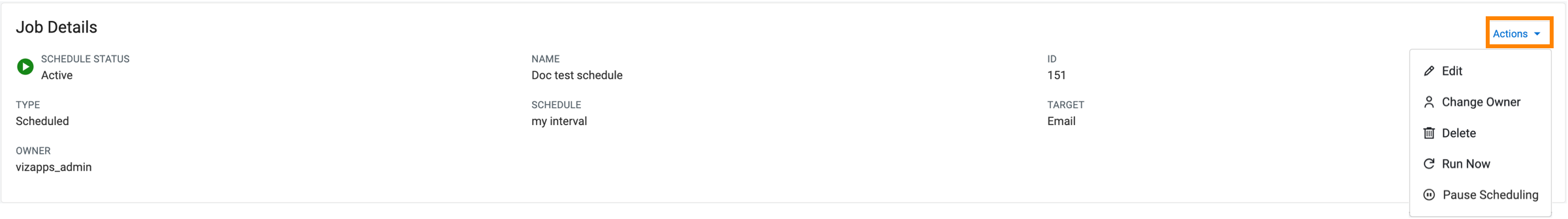 - On the Scheduled Jobs page, using the supplemental menu of a job listed on this page.