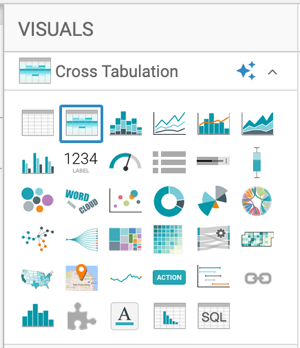 The following steps demonstrate how to create a new Cross Tabulation visual on the World Life Expectancy dataset. For an overview of shelves that specify this visual, see Shelves for cross tabulation.
