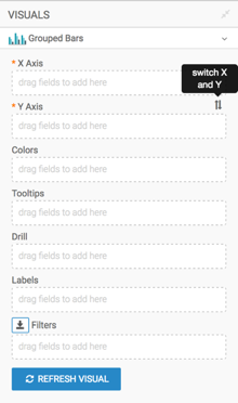 For an overview of shelves that specify this visual, see Shelves for grouped bars.