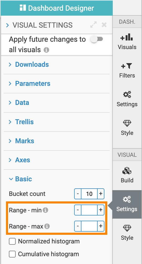 After setting these values, the histogram will automatically update to display