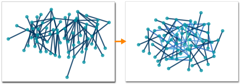 You can see the change to the appearance of the visual:Figure 1. Specifying the link color shelf in a network visual
