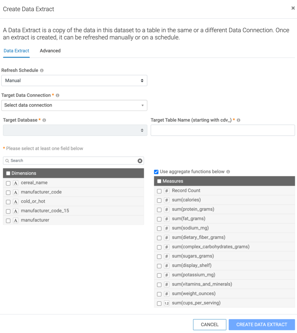 Follow these steps to create a data extract:
