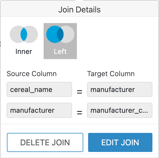 - In the Edit Join modal window, the following options are