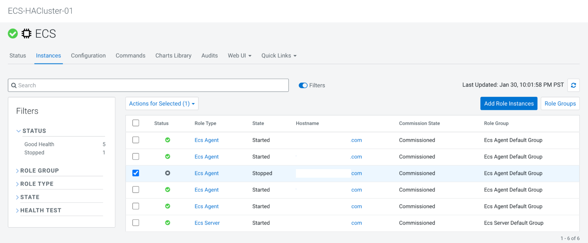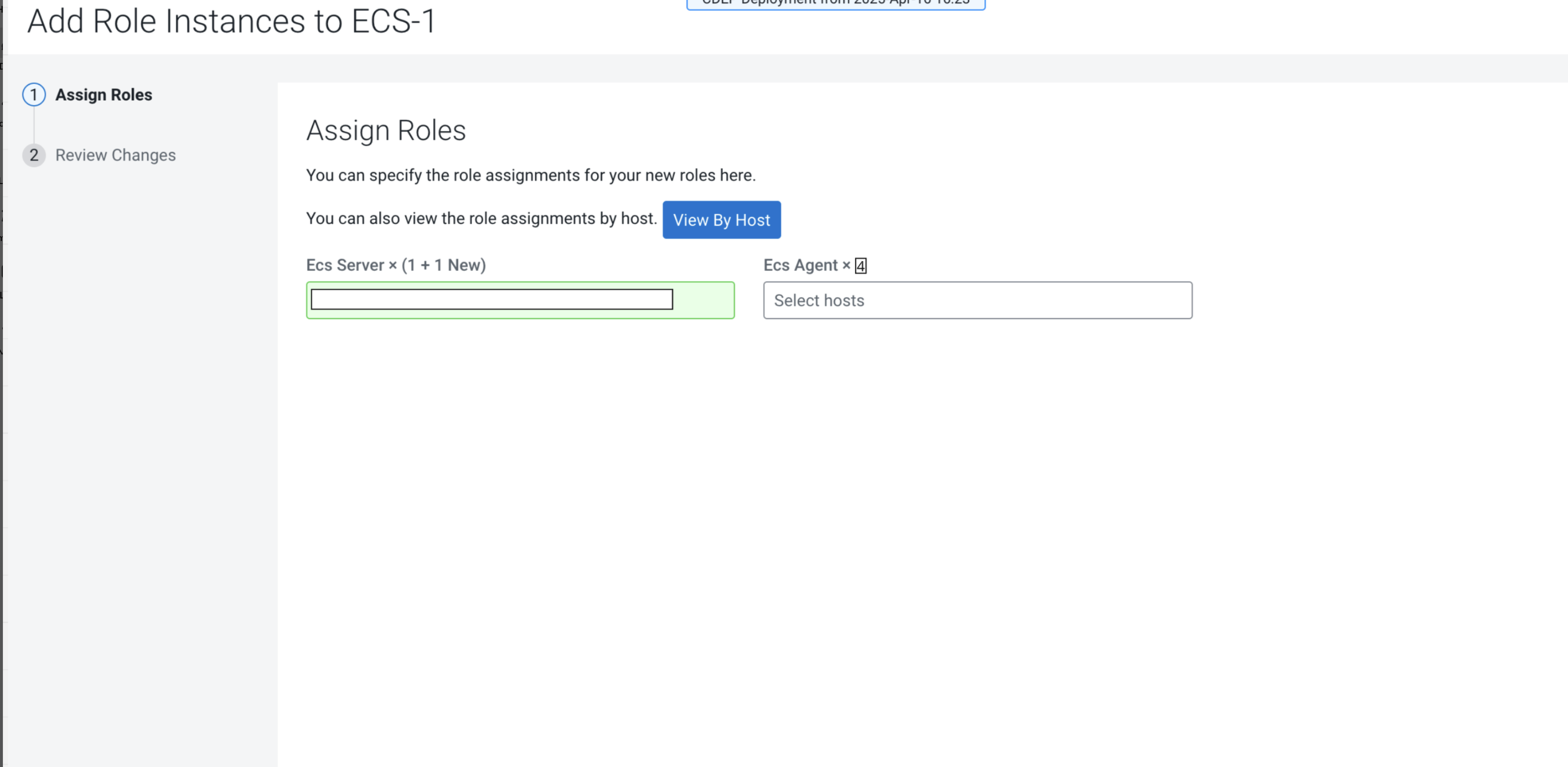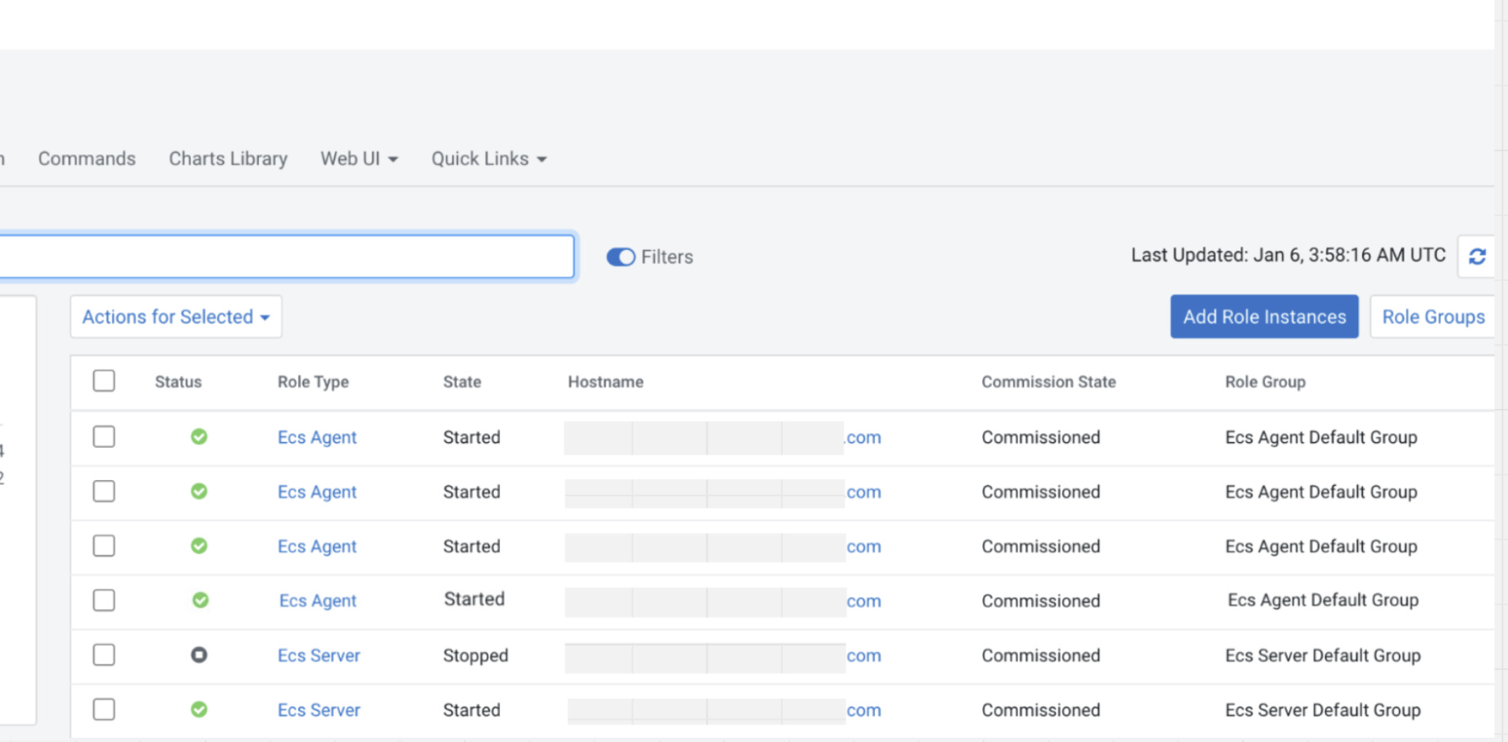 3. In Cloudera Manager, navigate to ECS Cluster > ECS and click Add Role Instances.