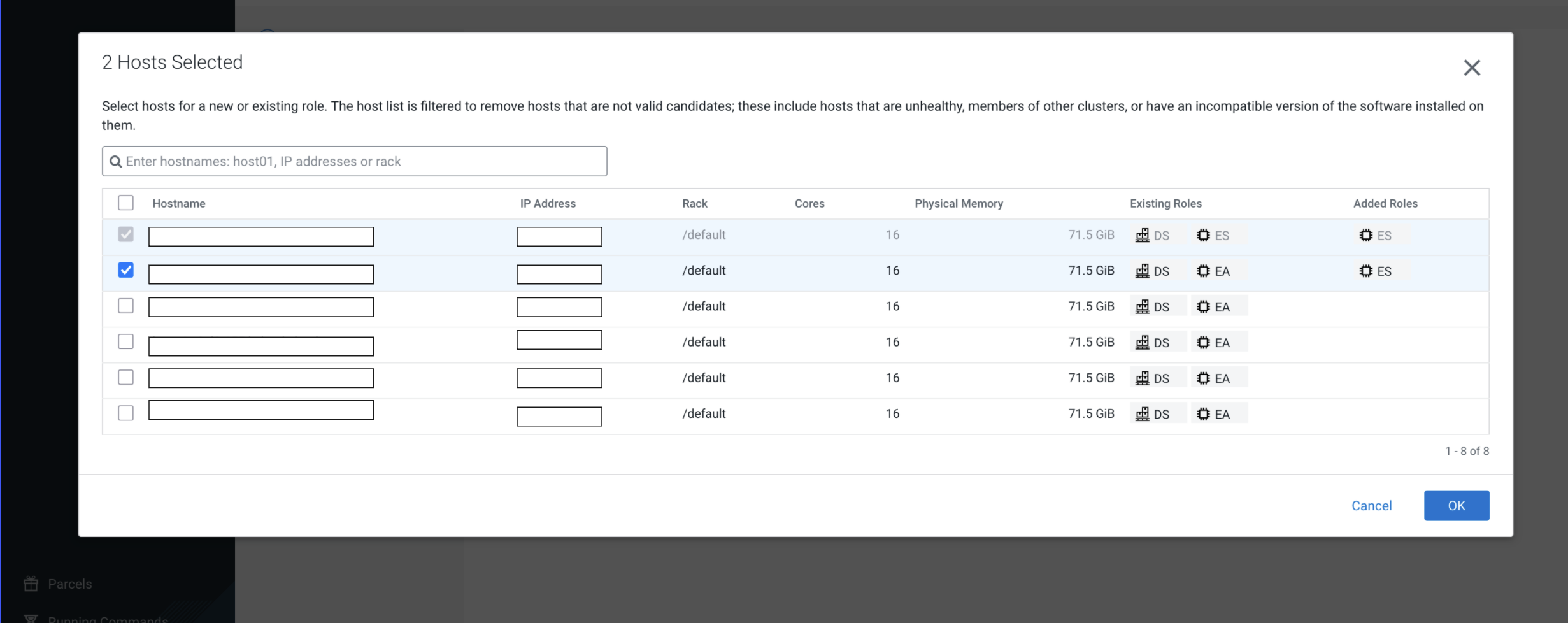 4. Add the available host agent1 as an Cloudera Embedded Container Service server in the Add Role Instances to ECS pop-up. Click Ok.