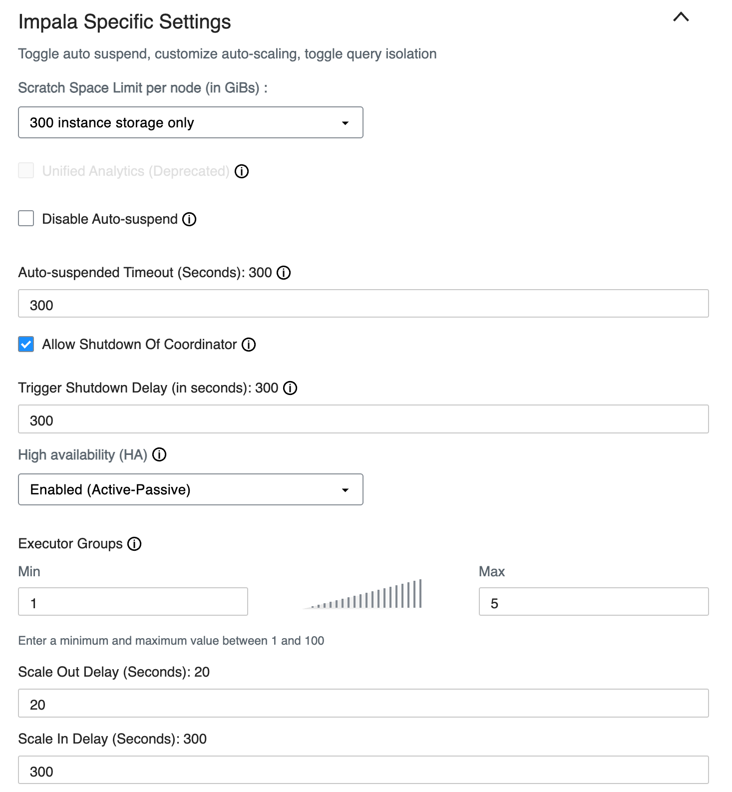 When you create a Virtual Warehouse, you can configure Impala coordinators to