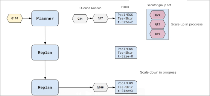 The Impala planner traverses successively larger executor groups iteratively to find one that can run the query efficiently. Traversal stops when the planner finds an acceptable executor group set. In Workload Aware Auto-Scaling, this process is called replanning.