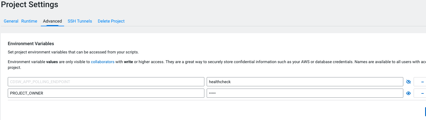 Figure 1. Setting CDSW_APP_POLLING_ENDPOINT in Project Settings