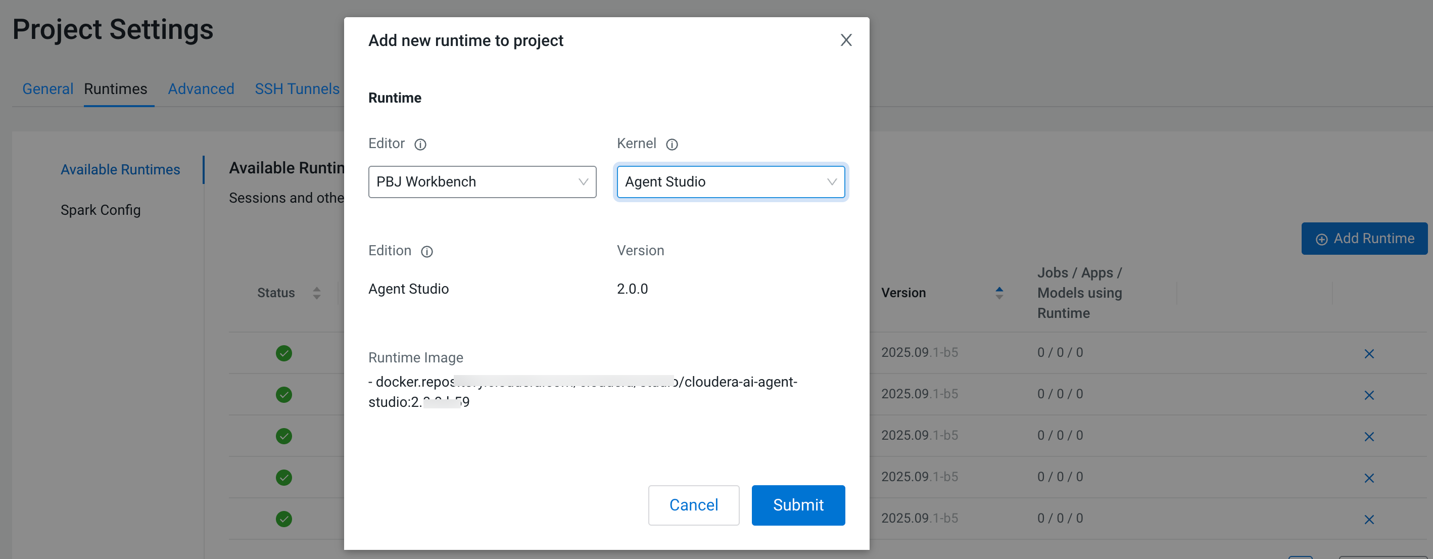 /studio_app/startup_scripts/run-app.py. This script is auto-created during the installation process. - Select Agent Studio as the kernel under the Runtime settings.