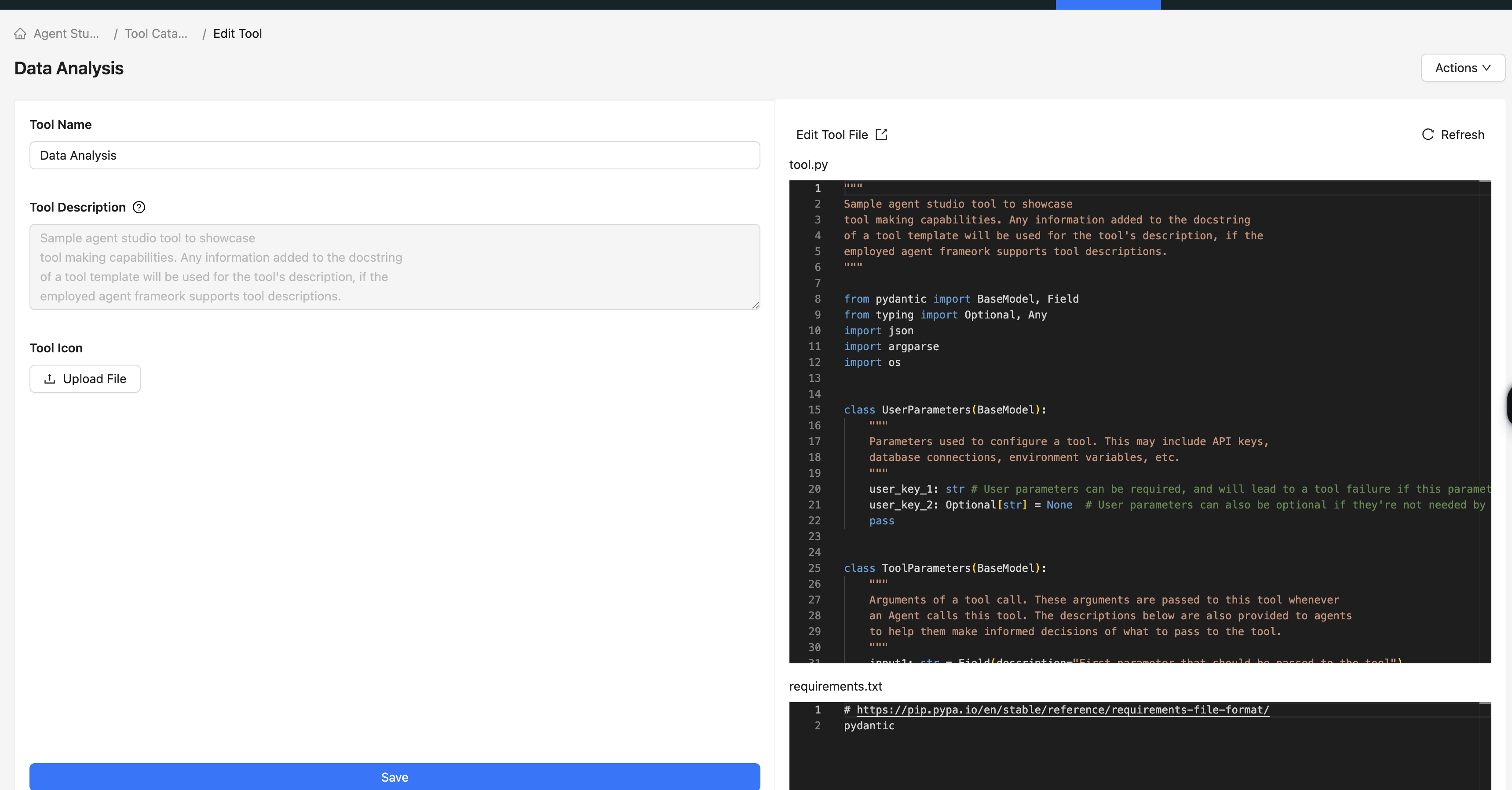 You can edit a tool in Agent Studio.