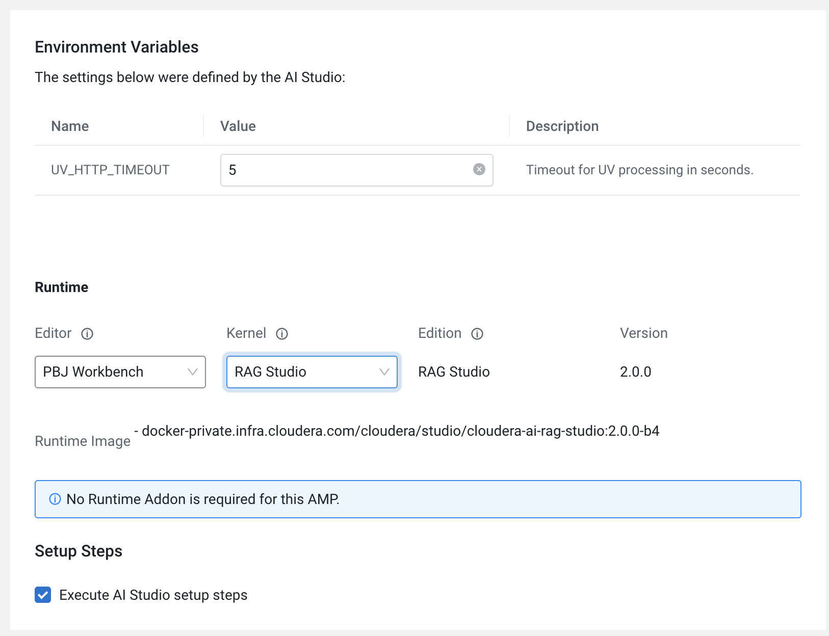 Click the Launch button in the RAG Studio box to initiate installation in runtime mode. The Configure Studio: Rag Studio page is displayed.