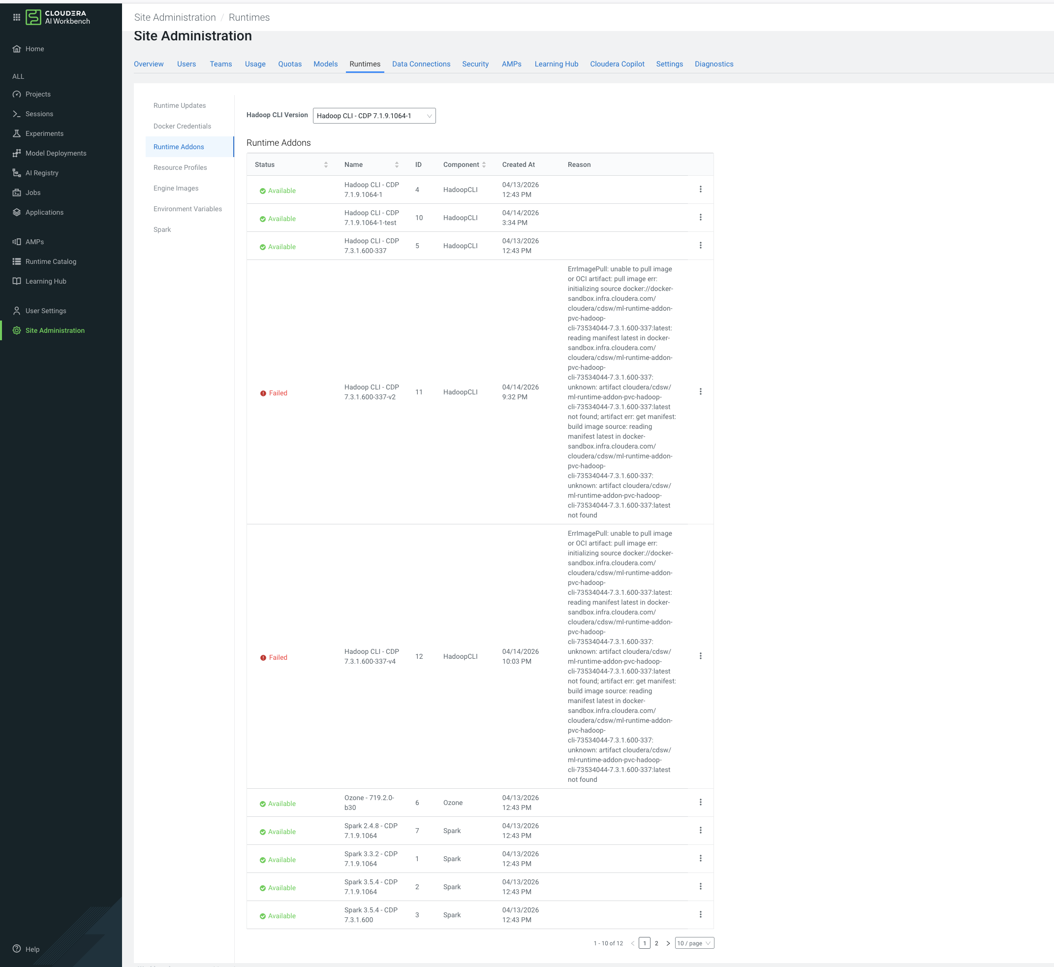 The Cloudera AI Workbenches page