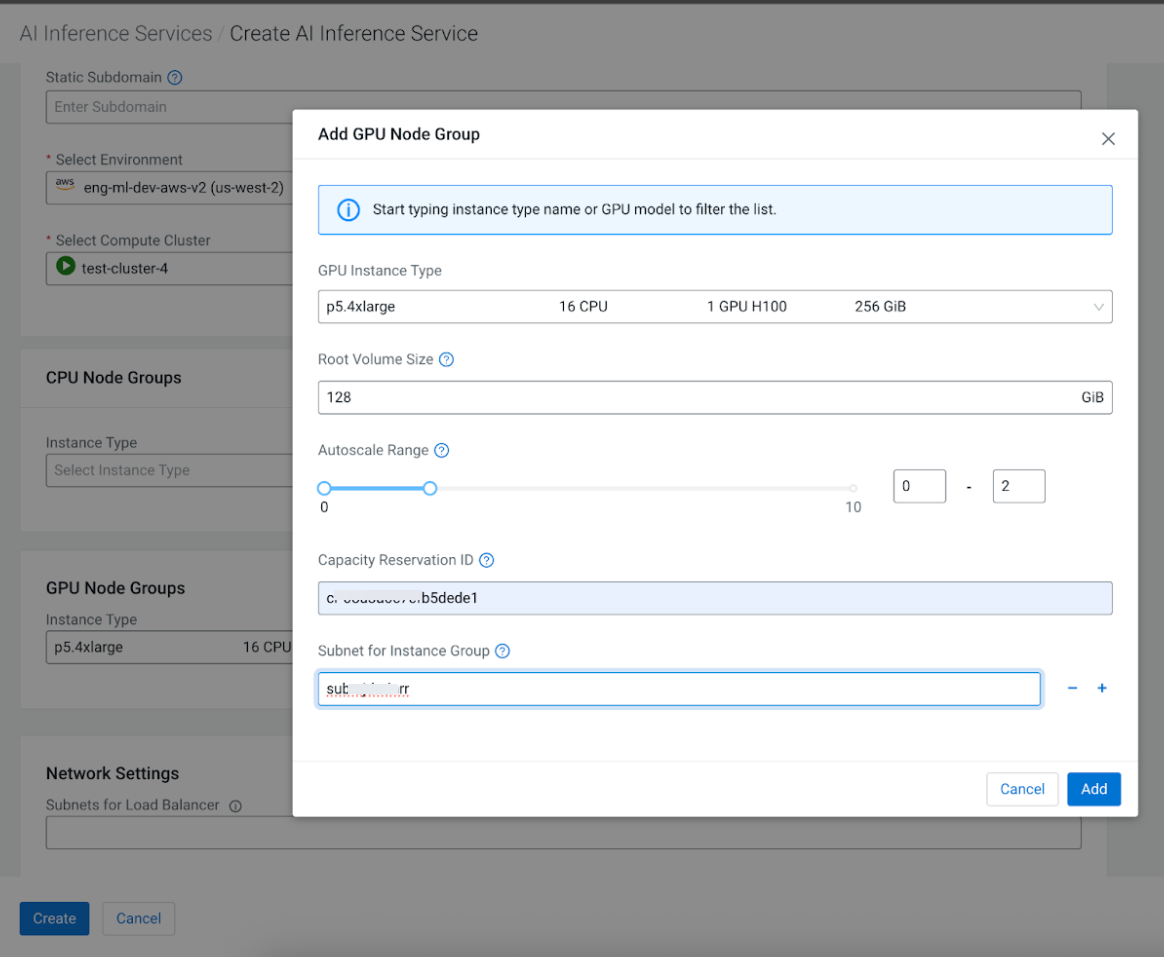 When creating or editing a Cloudera AI Inference service instance, perform the following: