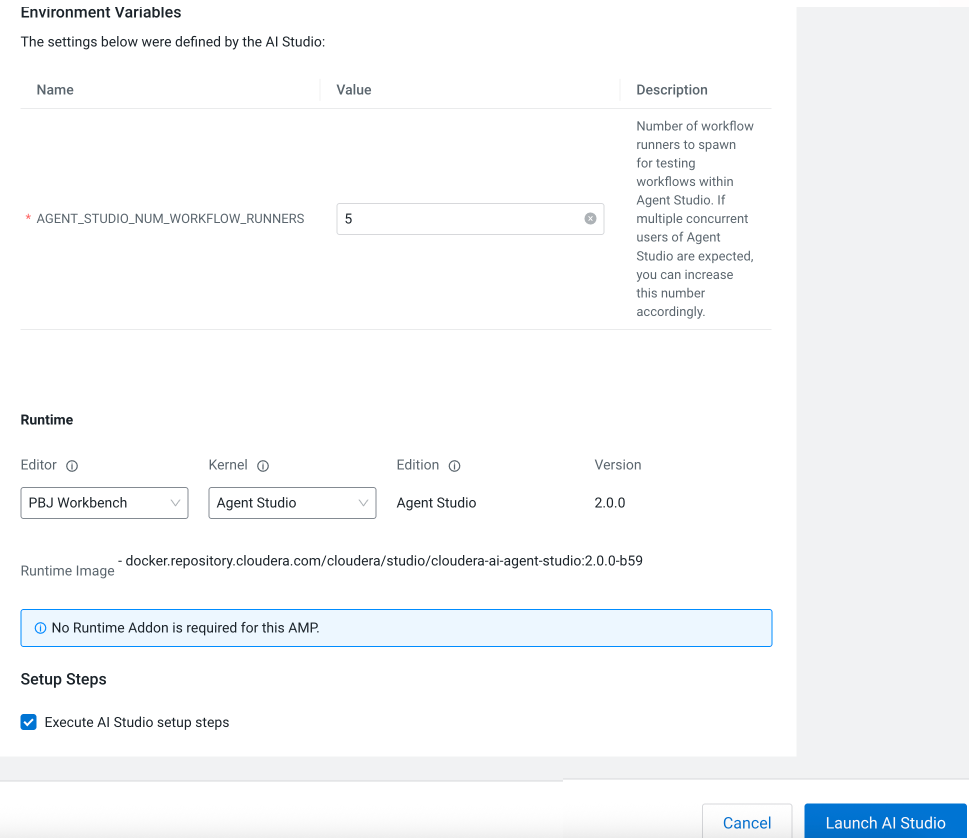 Click the Launch button in the Agent Studio box to initiate installation in runtime mode. The Configure Studio: Agent Studio page is displayed.