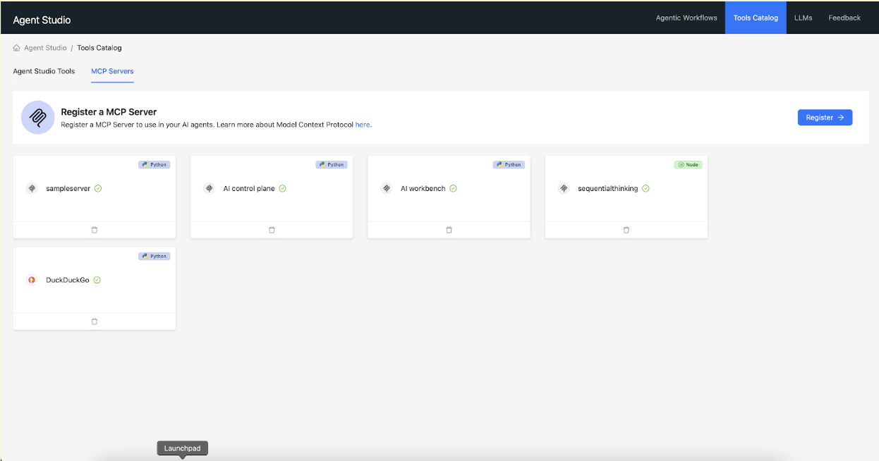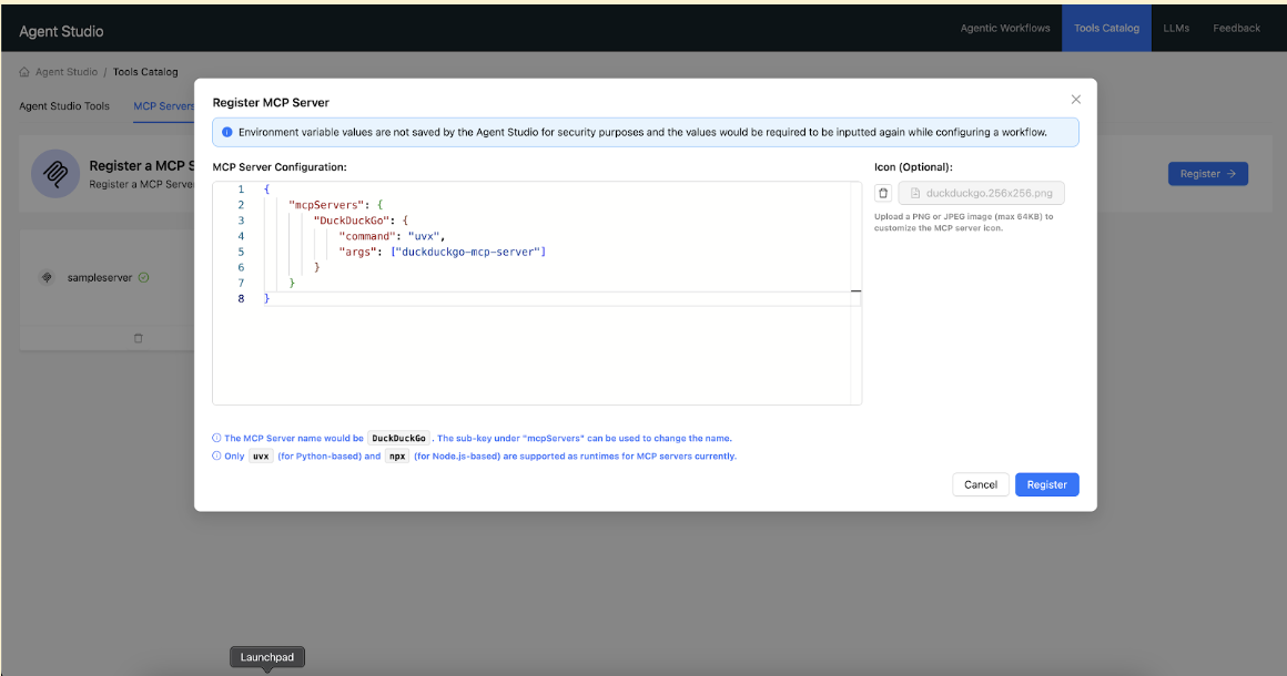 Learn about registering a MCP server in Agent Studios.